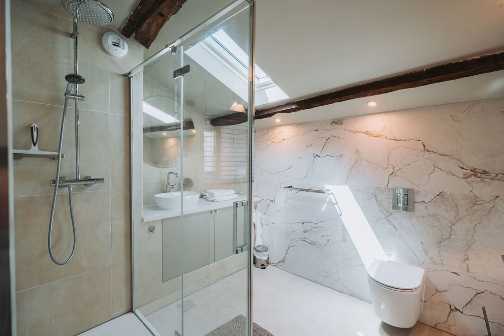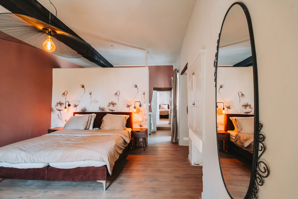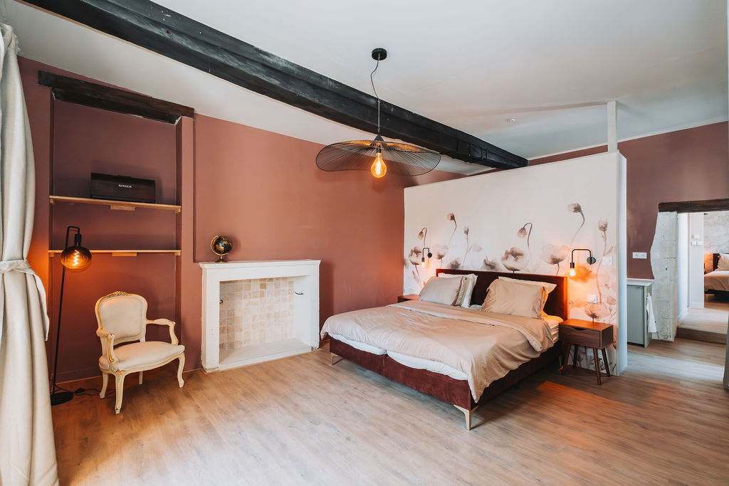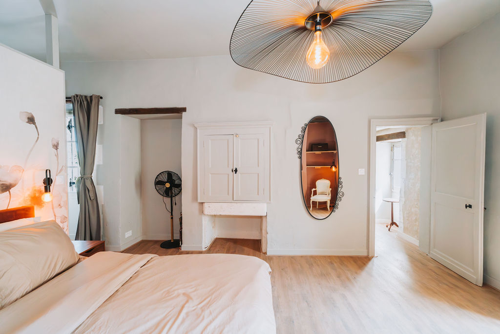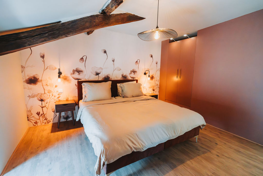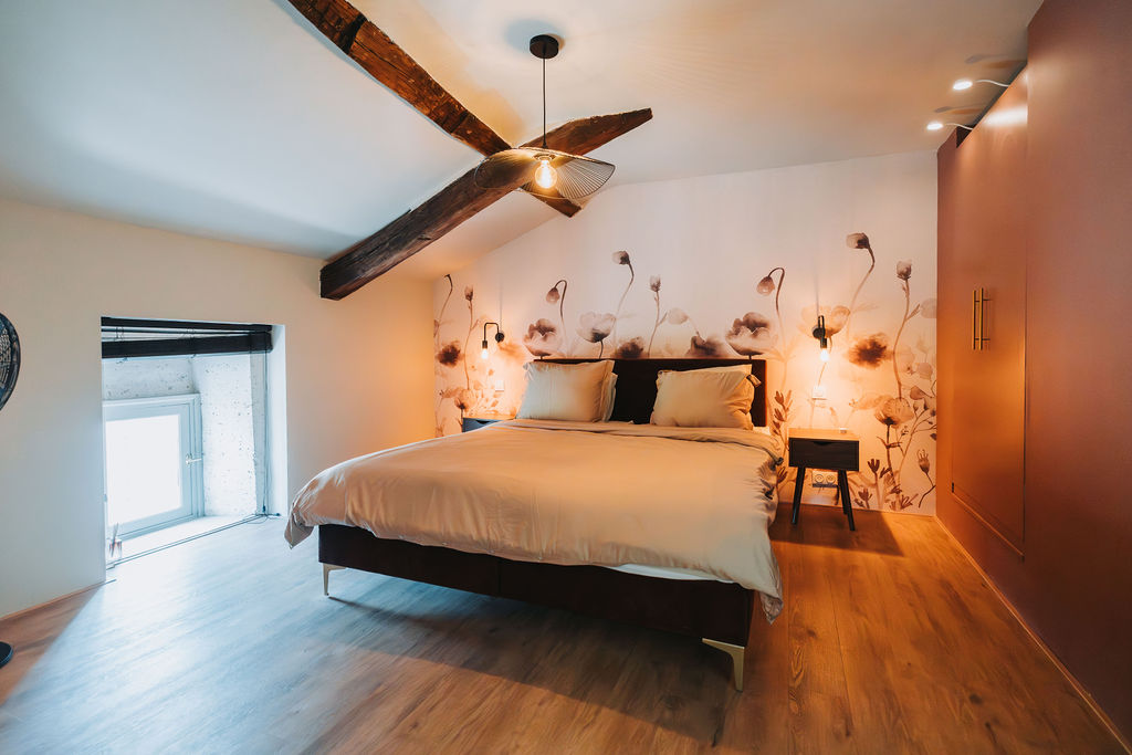 The second-floor bedroom also features a wonderfully large box-spring bed and an ensuite bathroom. For ultimate relaxation, this is the perfect place!