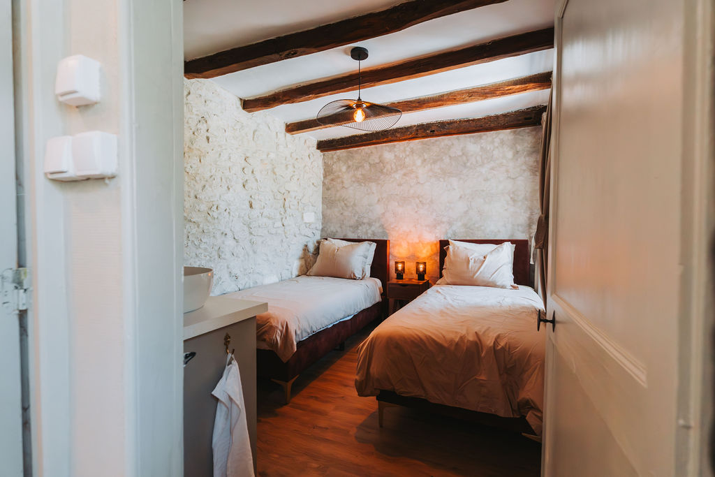 The other bedroom on the first floor has two single beds. Ideal for children or (grand)parents. It also features comfortable bedding and a comfortable size (90x200cm).